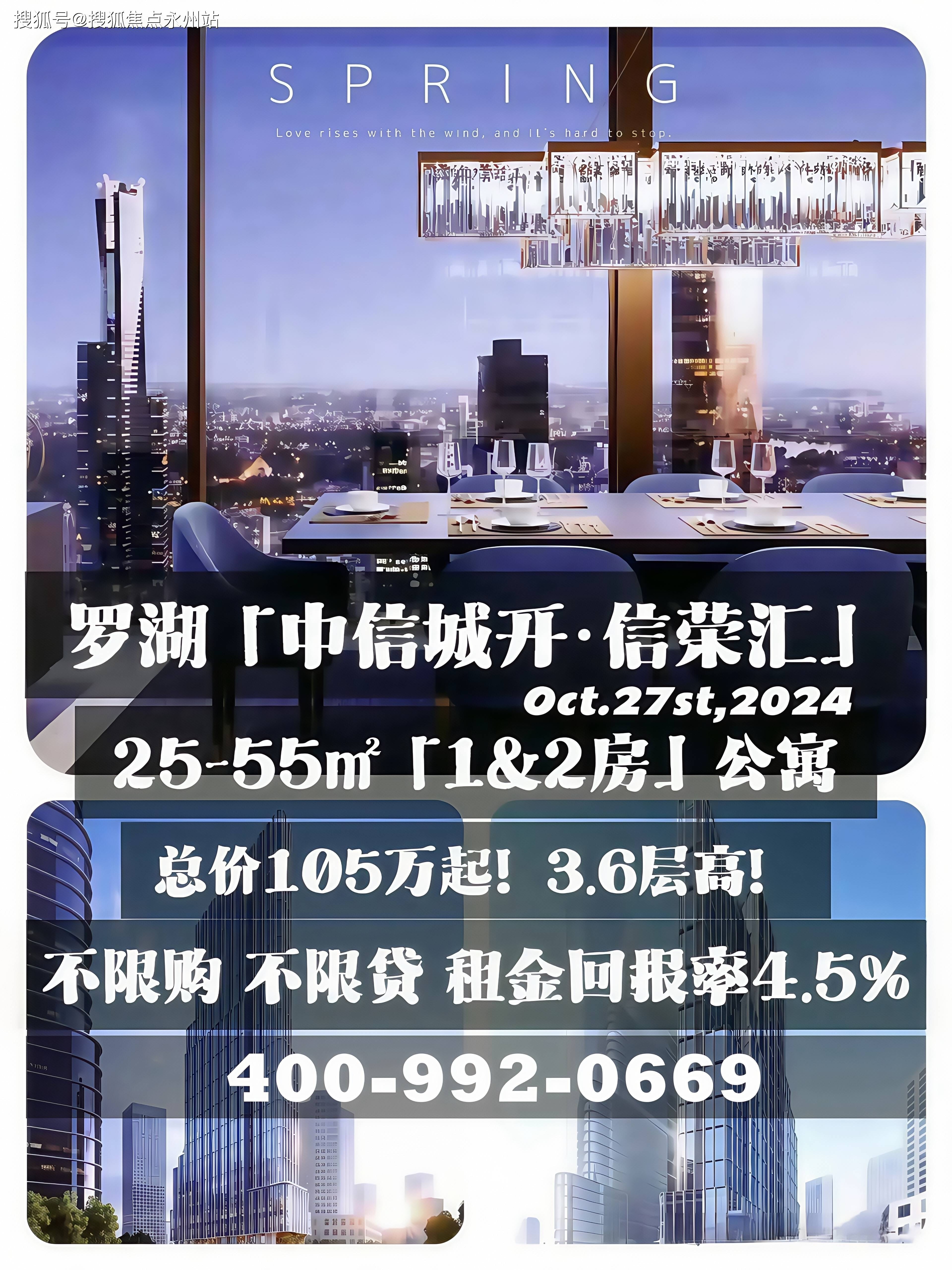 位于深圳罗湖笋岗地铁站D出口,是中信城开在深圳核心城区的又一精品项目。项目主打建面约25-55㎡的精装修公寓,拥有约3.6米的层高,共218套公寓单位。作为双地铁上盖资产,信荣汇公寓兼具自住与投资价值,不限购不限贷,为商务精英、新引进人才及外地投资客提供了优质的居住和投资选择。(深圳罗湖中信城开信荣汇售楼处电话:)