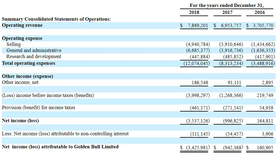 最新财报显示,2018年度点牛金融录得营业收入788.92万美元,同比增加13%;录得净收入亏损353.71万美元,与2017年度的净亏损99.68万美元相比,亏损还扩大了约254.85%。对于亏损扩大的原因,点牛金融表示在营销、获客相关的促销费用方面支出有所增长,同时增加了高达204万美元的业务咨询费用。