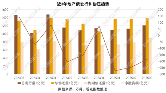 而境外债券的锐减则反映了国际投资者对中国房地产行业风险的重估——受地缘政治、汇率波动及部分房企境外债违约事件影响,境外融资渠道基本处于冻结状态,2025年Q3境外债券规模已不足2022年的半成,凸显跨境融资环境的严峻性。